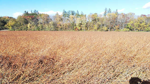 通常の茎の青々しい収穫に比べると、雲泥の差でコンバインに優しい乾いた状態で収穫できました。